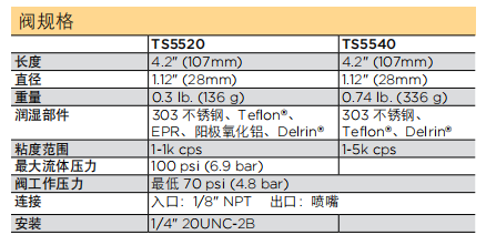 如果您需要微量點(diǎn)膠噴霧閥,可以了解一下TS5540-MS,適用于使用一次性針頭對低粘度材料進(jìn)行噴霧。噴霧圖形可調(diào)范圍是以0.18"-0.60" (4.6mm-15mm)為直徑的圓形。