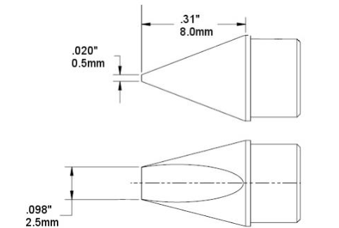 HCV 烙鐵頭 增加額外熱能,應(yīng)用于高熱能需求焊接,適用于MX-500, MX-5000, MX-5200, CV-5200,和CV-500系統(tǒng)的MX-H6-HTD, CV-H6-HTD和 CV-H7-HTD手柄。