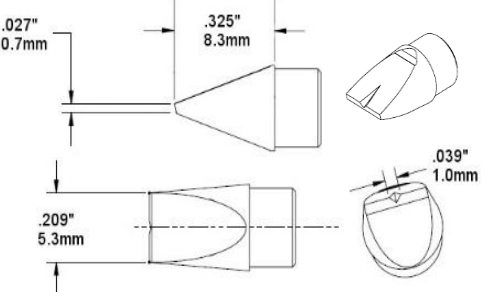 HCV 烙鐵頭 增加額外熱能,應用于高熱能需求焊接,適用于MX-500, MX-5000, MX-5200, CV-5200,和CV-500系統的MX-H6-HTD, CV-H6-HTD和 CV-H7-HTD手柄。