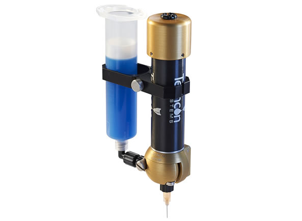 Techcon Systems TS5000DMP螺桿閥,通過控制時間、氣壓及螺桿速度,高精度地進行打點、劃線等點膠工藝,是一款適合中高粘度流體的點膠閥。